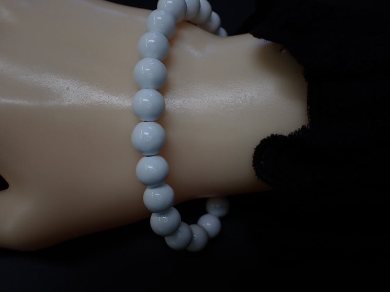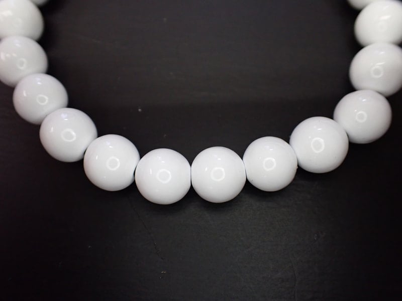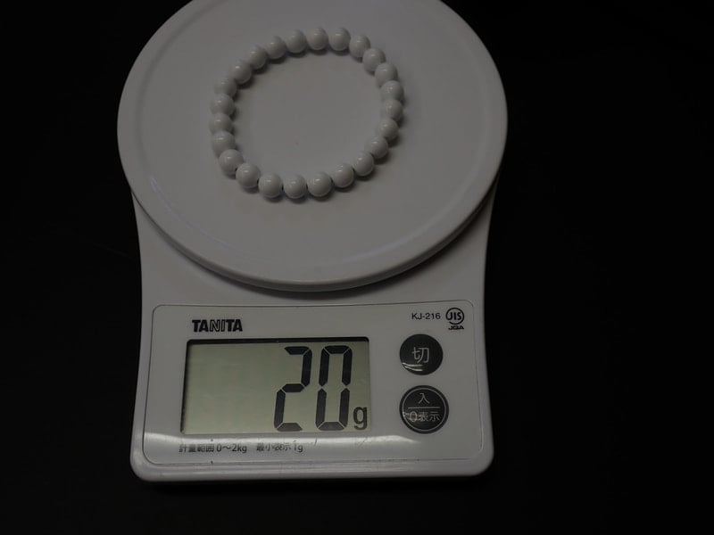 8mm玉で玉川温泉産24玉、重さ20g、サイズは手首17cmまで、線量11.14μSv/hrとなります。光沢あり(白)ホワイト。