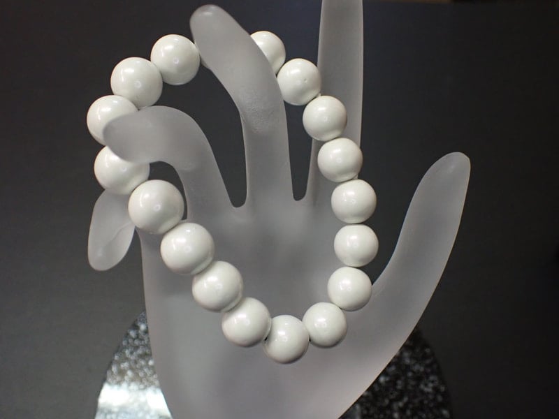 こちらのブレスレットは、希少で特別天然記念物の玉川温泉北投石を粉黛にし、セラミックとともに加工した玉川温泉北投石ボールのみを使用しスーパーパールホワイトに