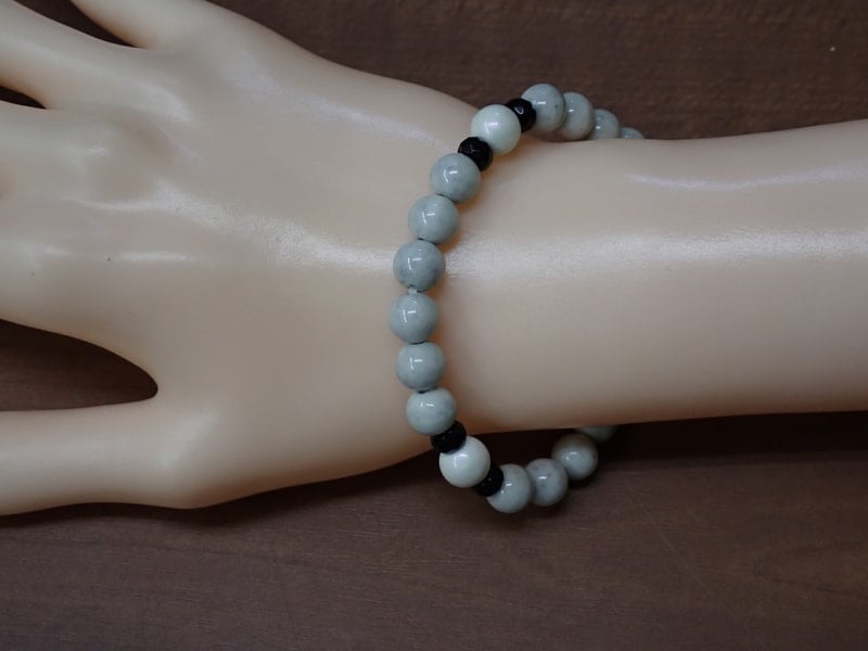 こちらのブレスレットは、希少で特別天然記念物の玉川温泉北投石を粉黛にし、セラミックとともに加工した玉川温泉北投石ボールと、台湾北投石ボールとオニキスを使用し作成致しました。ブレスレットは伸び縮みするオペロンゴムを使用しておりますので、男女問わずご利用頂けます。
