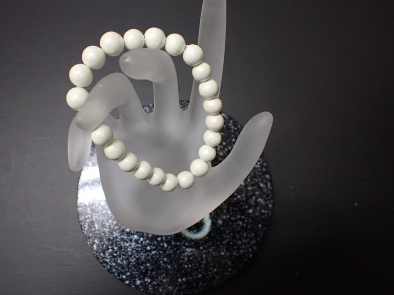 8mm玉で玉川温泉産25玉、重さ20g、サイズは手首18cmまで、線量15.30μSv/hr以上の物。光沢ありパールホワイト。