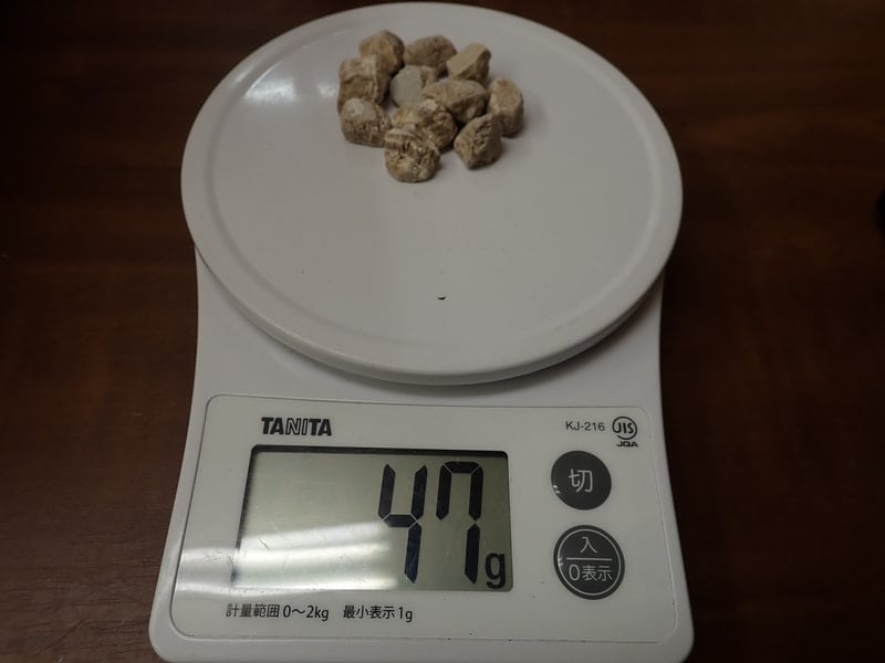 内容量 47gサイズ 11ヶの北投石線量 9.129μSv/hr