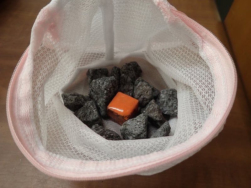 オレンジ焼成北投石1個線量2.895μSv/玉川溶岩石200g