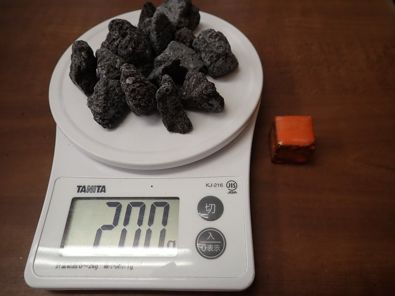 内容量 オレンジ焼成北投石1個線量2.733μSv/玉川溶岩石200g線量 2.733μSv/hr